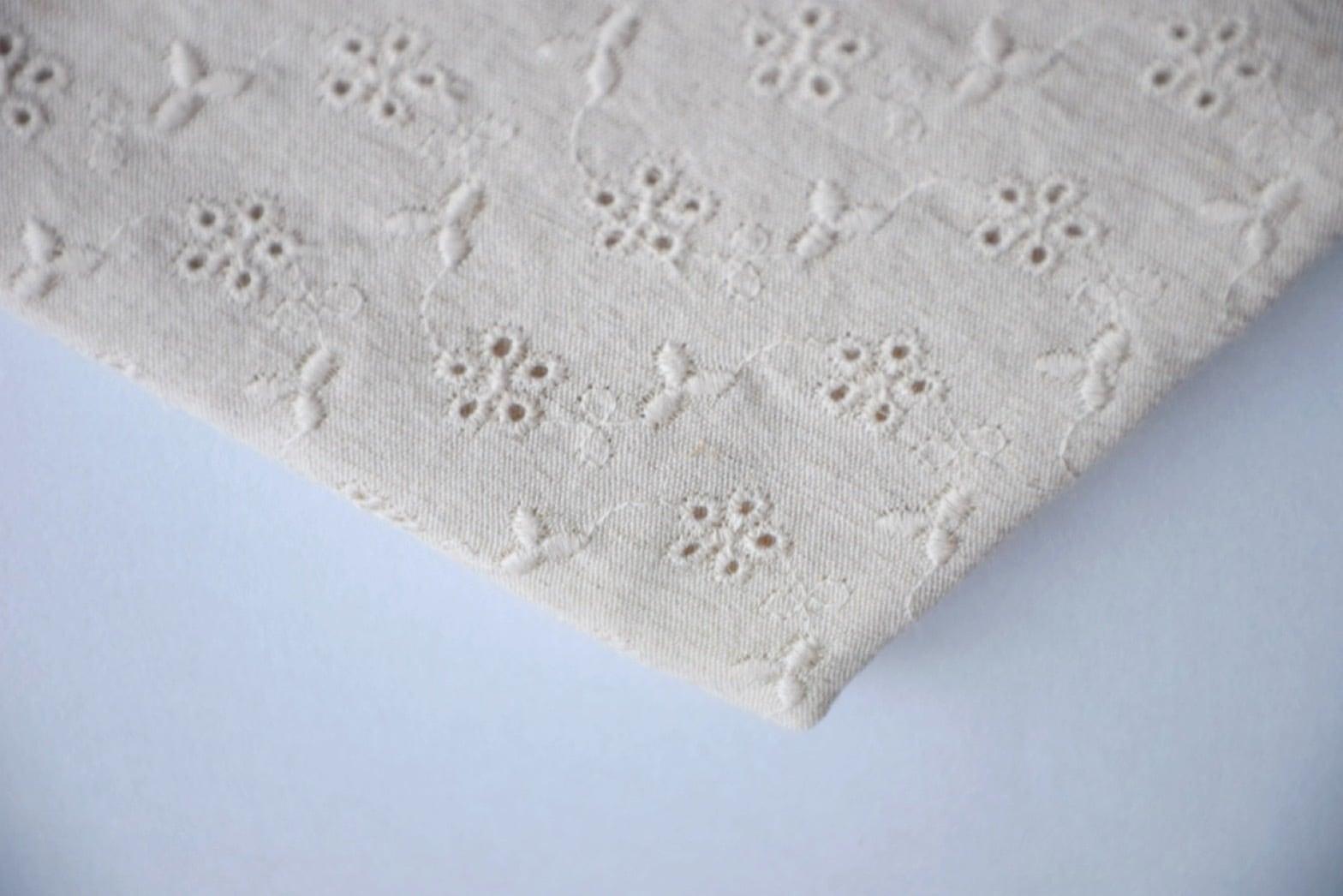 生成り色の生地に同系色の刺繍が散りばめられています。